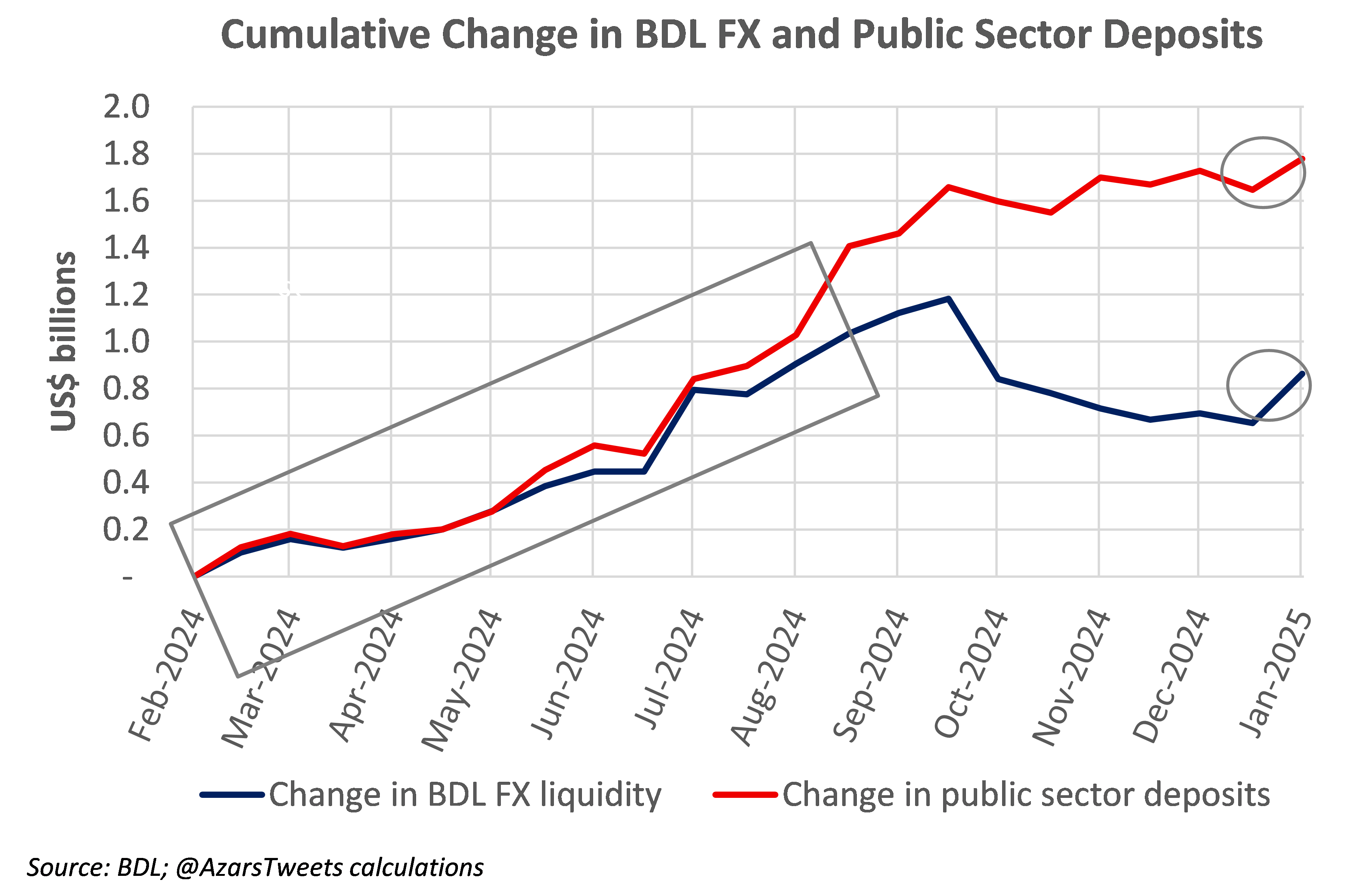 وفي حال تمّ استثناء إيداعات الدولة من الإيرادات الضريبية، من احتياطي مصرف لبنان واستثناء التزاماته بالعملات الأجنبية (من دون التطرّق إلى التزاماته للمصارف والمودعين)، فان احتياطيه سيتقلّص إلى 2,4 مليار دولار. مع الإشارة إلى أن إيداعات القطاع العام لدى مصرف لبنان ارتفعت بحوالى 1,78 مليار دولار منذ شباط 2024 ولغاية منتصف كانون الثاني 2025، في حين ارتفع احتياطي المركزي من العملات الأجنبية في الفترة نفسها بحوالى 863 مليون دولار، علماً أن الاحتياطي كان قد زاد 1,12 مليار دولار لغاية أيلول 2024 ( تاريخ اندلاع الحرب) وإيداعات القطاع العام كانت زادت بقيمة 1,46 مليار دولار، إلا أن تدخل مصرف لبنان في السوق خلال فترة الحرب، غيّر الأرقام.
