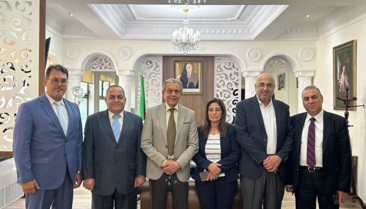 في إطار الجهود الرامية إلى مواصلة تعزيز العلاقات الثنائية بين لبنان والجزائر، استقبل سفير الجزائر في لبنان كمال بوشامة، عددا من الشخصيات الاقتصادية والأكاديمية البارزة يتقدمها رئيس مجموعة “أماكو” علي محمود العبد الله. وشارك في اللقاء الذي جرى في السفارة الجزائرية، كل من نائب رئيس جامعة رفيق الحريري هشام قبرصلي، رئيسة بلدية تكريت الدكتورة هلا العبد الله، مدير مهنية تكريت الرسمية المهندس زياد الصانع والأكاديمي الجامعي الدكتور أدهم قبرصلي.