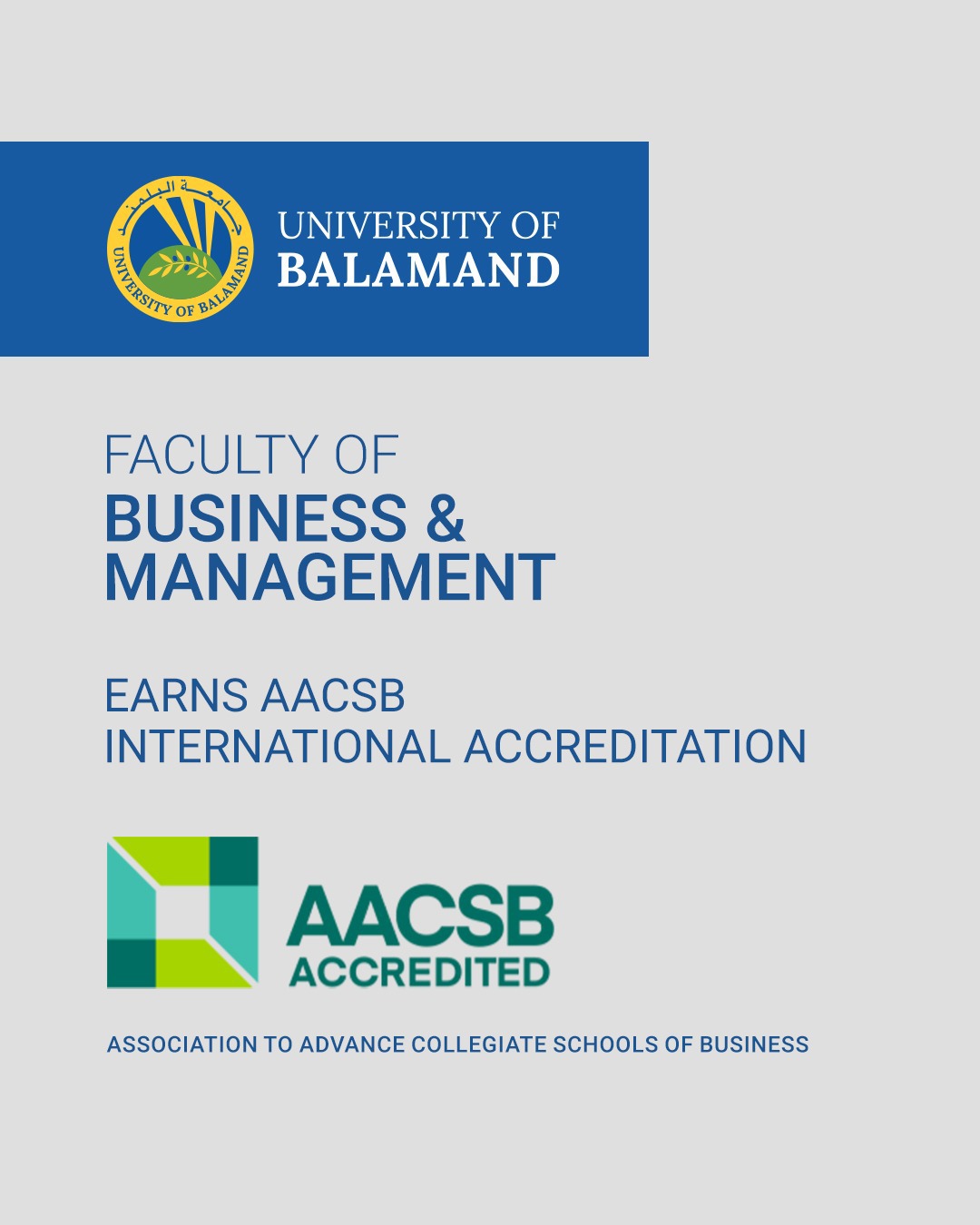 حصدت كلية إدارة الأعمال في جامعة البلمند اعتماد AACSB International (جمعية تطوير كليات إدارة الأعمال الجامعية)، وهو اعتراف عالمي يجسّد التميّز في التعليم والبحث والتأثير المجتمعي في مجال إدارة الأعمال.