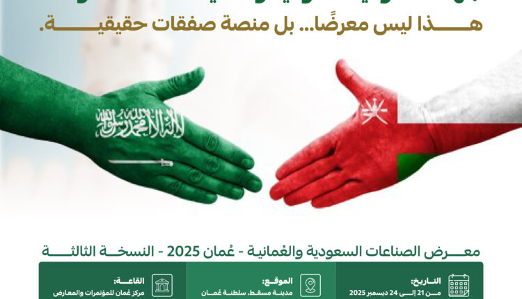 ويهدف المعرض إلى تعزيز تكامل الصناعة الخليجية، وتمكين الصادرات السعودية، وفتح أسواق وفرص استثمار مشتركة بين البلدين، بما يتماشى مع رؤية المملكة 2030 ورؤية عُمان 2040.