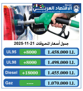 قطاعات اقتصادية سعر قارورة الغاز صباح اليوم! On نوفمبر 21, 2025 شارك أظهر الجدول الجديد لأسعار المحروقات في لبنان والذي صدر اليوم في 21 تشرين الثاني 2025، استقراراً بسعر قارورة الغاز. وقد سجل سعر قارورة الغاز سعة 10 كلغ عند 1,070,000 ليرة لبنانية. Post Views: 51 شارك FacebookTwitterGoogle+ReddItWhatsAppPinterestEmailLinkedinTelegram