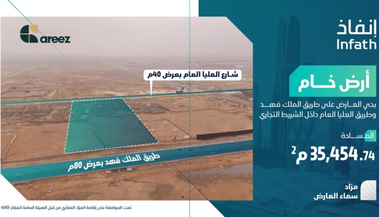 ويطرح المزاد فرصتين عقاريتين مميزتين من الأراضي الخام في حي العارض، أحد أكثر أحياء شمال الرياض نموًا وجاذبية استثمارية، وذلك على النحو التالي: